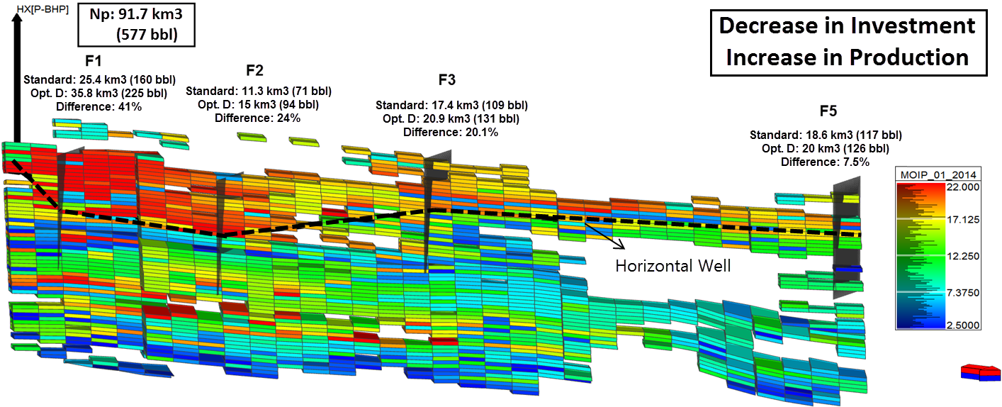 We show the example of one of the horizontal wells that we optimize with this procedure: